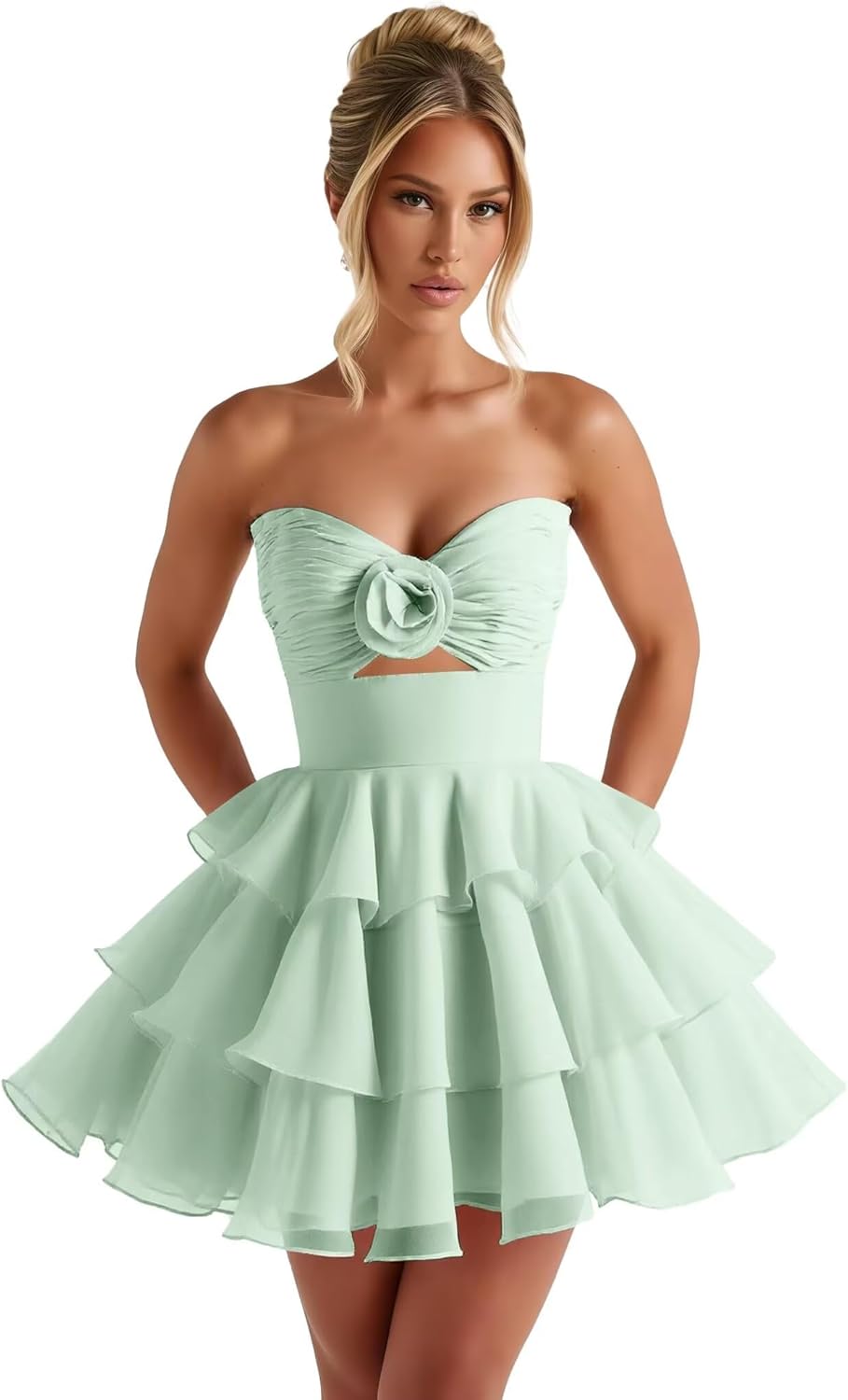 | Fabric Type | Strapless Tiered Chiffon Homecoming Dresses |