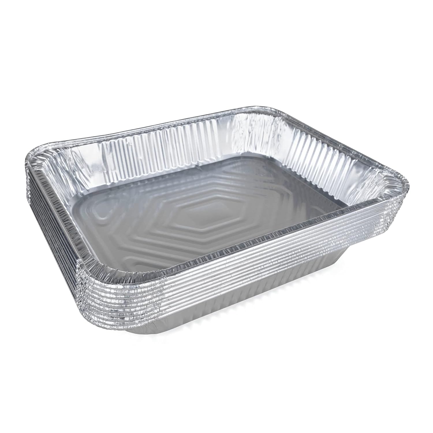 IDL Packaging offers the Half-Size Steam Table Pans with 1.5-inch Angled Walls. The curled rim provides effortless grip and hold. Inside dimensions: 11.75-inch long, 9.25-inch wide, 1.5-inch deep. Do not allow oxygen, humidity, odor, and contaminants to pass through. The maximum baking temperature for these foil baking dishes is 1220 degrees Fahrenheit (an aluminum melting temperature). Min temperature – absolutely freezer safe. Steaming, transportation, and serving could not be any easier with our foil roasting pan with covers. Now use a single dish for grilling, roasting, BBQing, cooking, baking, freezing, and more. These disposable food containers with tops are stackable, durable, reusable, and recyclable. Great for restaurants, cafes, takeout, camping, catering, food tastings, farmer markets, birthday parties, etc. You do not need to worry about lifting heavy pots, missing favorite tableware, and broken expensive plates. Perfect as food containers to go, foil serving trays for parties, or leftover containers. They preserve your food at its best and keep you from worrying about all the missing/broken tableware. Visit our IDL Packaging Amazon Brand Store and find there a wide range of aluminum foil products for all purposes. Please choose the one that suits your needs the best.